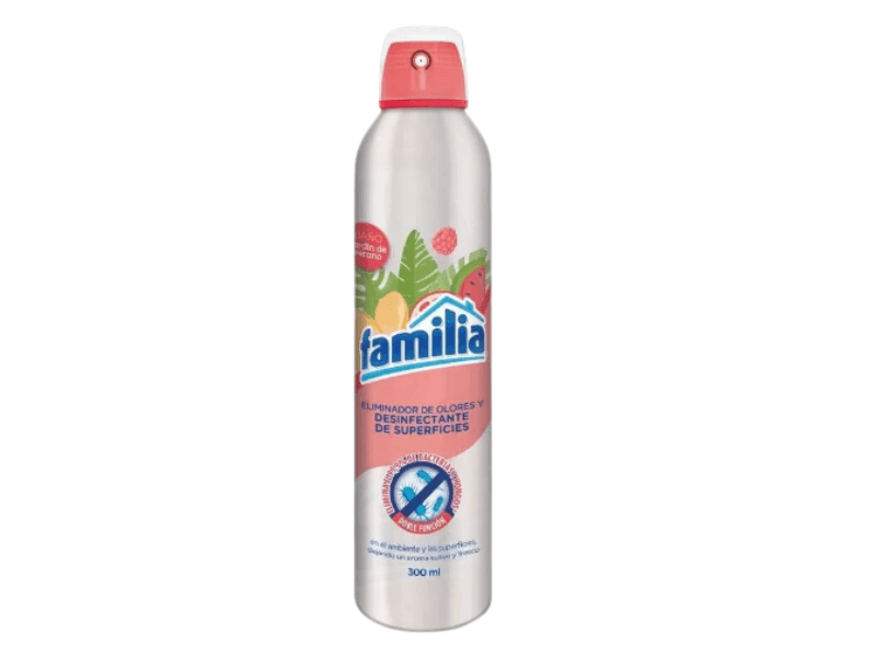 Eliminador de olores y desinfectante de superficies Familia fragancia Jardín de verano 300ML.