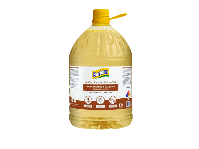 Jabón líquido espumoso para manos y cuerpo fragancia Avena con ph balanceado y glicerina, presentación de 3.8L.